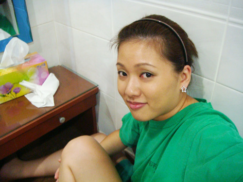 她就比手劃腳的叫我們拿起桌上的東西往臉上抹抹擦擦...
