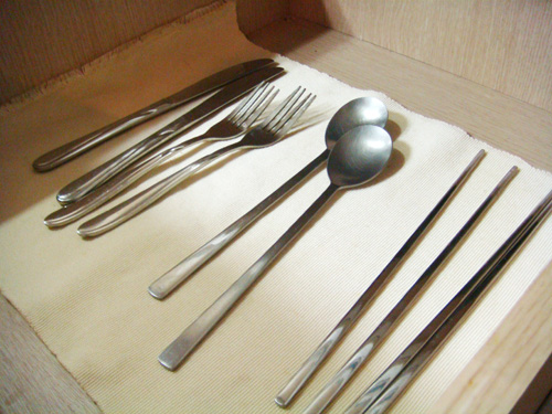 抽屜裡擺好的韓式湯筷,讓我走的時候真的很想偷一下... 但忍住忍住... XD